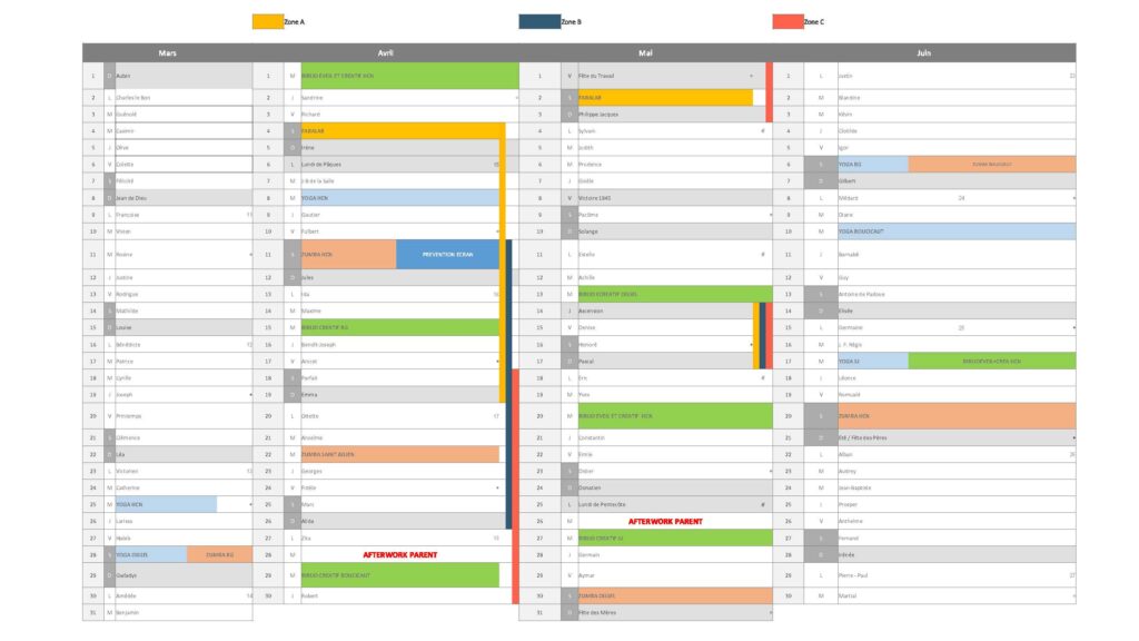 Calendrier des ateliers
